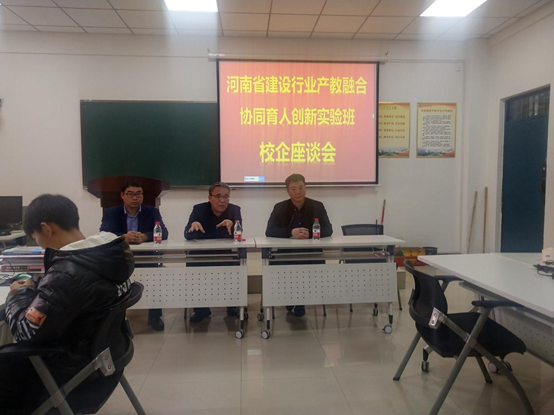 宣讲招聘会后,校企双方召开了河南省建设行业产教融合协同育人创新实验班校企座谈会,河南省第一建筑工程集团劳动人事处处长杨旭东及我校williamhill中文副院长刘雷、河南省数字建造工程技术研究中心主任殷许鹏参会。在会上,杨旭东对企业的规章制度、福利待遇、企业文化、现有产业结构、组织构架、人力资源政策等几个方面向同学们做了介绍与交流。并着重交流了大四学生在进行实习时的分配意愿,解答了同学们对于实习就业方面的疑问,加强了校企合作方面的交流。最后,校企双方都表达了对于创新实验班未来发展的殷切期待。