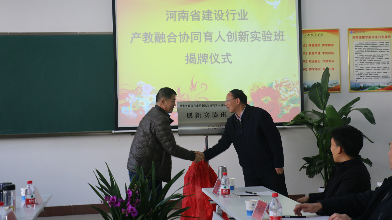 (通讯员谢冰艳常小高)12月4日上午,我校与河南省第一建筑工程集团有限责任公司合作共建的河南省建设行业产教融合协同育人创新中心成立暨创新实验班开班揭牌仪式在我校williamhill中文A#306举行。我校副校长周颖杰、河南省第一建筑工程集团有限责任公司副总经理杜巍及双方相关部门领导出席仪式。我校部分教师代表和创新实验班首批学员代表参加仪式。