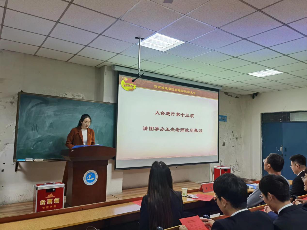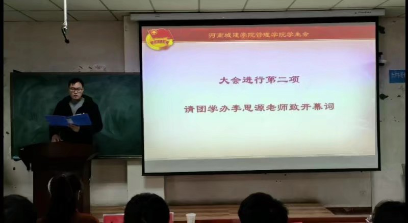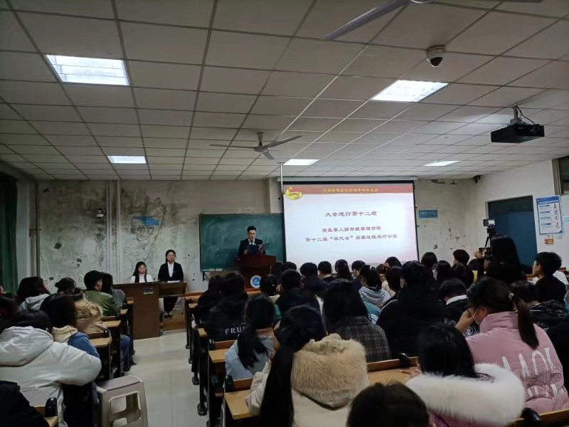 大会在庄严肃穆的国歌声中拉开帷幕。会上,学工办主任、团总支书记李思源老师致开幕词,学生会第十一届执行主席薛寒上台进行了大会论述。随后,19位候选人逐一上台进行竞选演讲。每一位候选人都讲述了自己在学生会的工作经历和心得体会,并充分表达了自己对学生会的认识和对未来工作的规划展望。随后,各位学生代表对19位候选人进行了投票。最后,由王杰老师致闭幕词。