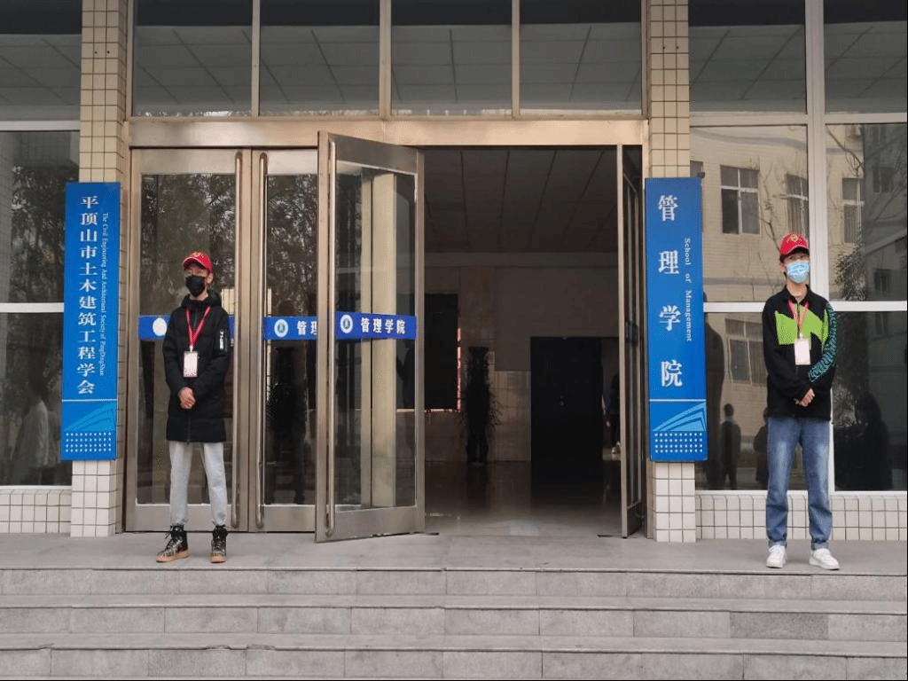积极分子正在系楼门口值班
