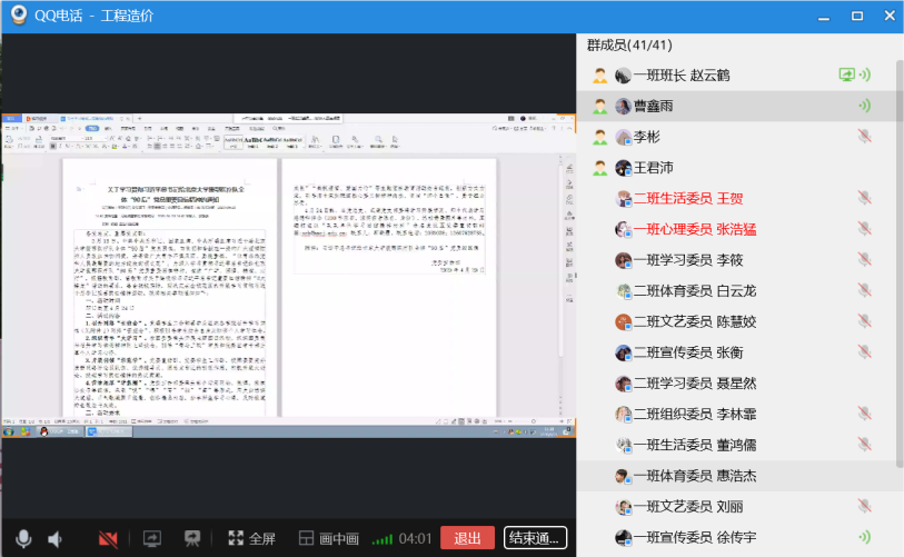 各团支部组织召开网络“云班会”