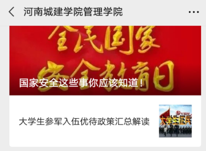 由于疫情原因师生未能到校,学院积极利用新媒体发布相关知识。以官网、微信公众号、微信群等方式营造安全教育学习氛围,大力倡议全体师生增强安全意识。