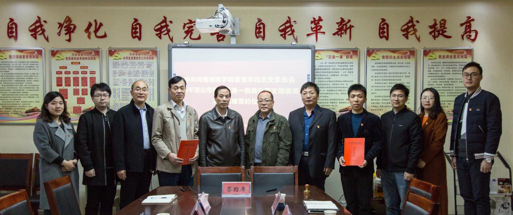 (通讯员:李思源)为深入开展“不忘初心、牢记使命”主题教育,促进党建工作落地生根,11月21日上午,williamhill中文与第一税务分局共同签署党组织共建协议并举行座谈会。一分局领导岳文玺、田永生、李占军和williamhill中文党总支书记谢学明、院长闫瑾、及党员代表参加了此次共建活动。