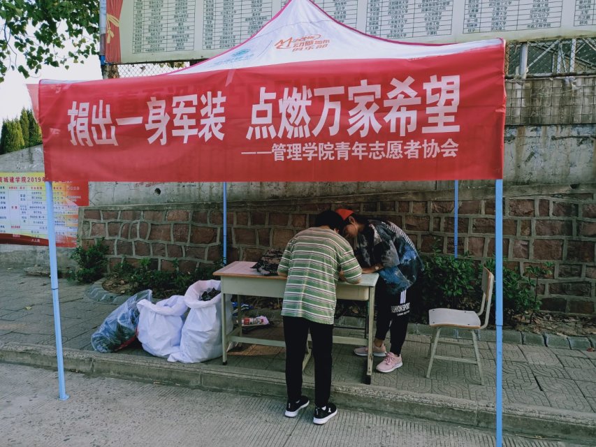 (通讯员:朱佳静)为了让同学们切实体会到奉献爱心的意义,有更加丰富多彩的校园生活。williamhill中文青年志愿者协会于9月25日至9月26日在二区D宿舍楼、福美来超市、文苑通道路口开展了军训服捐赠活动。