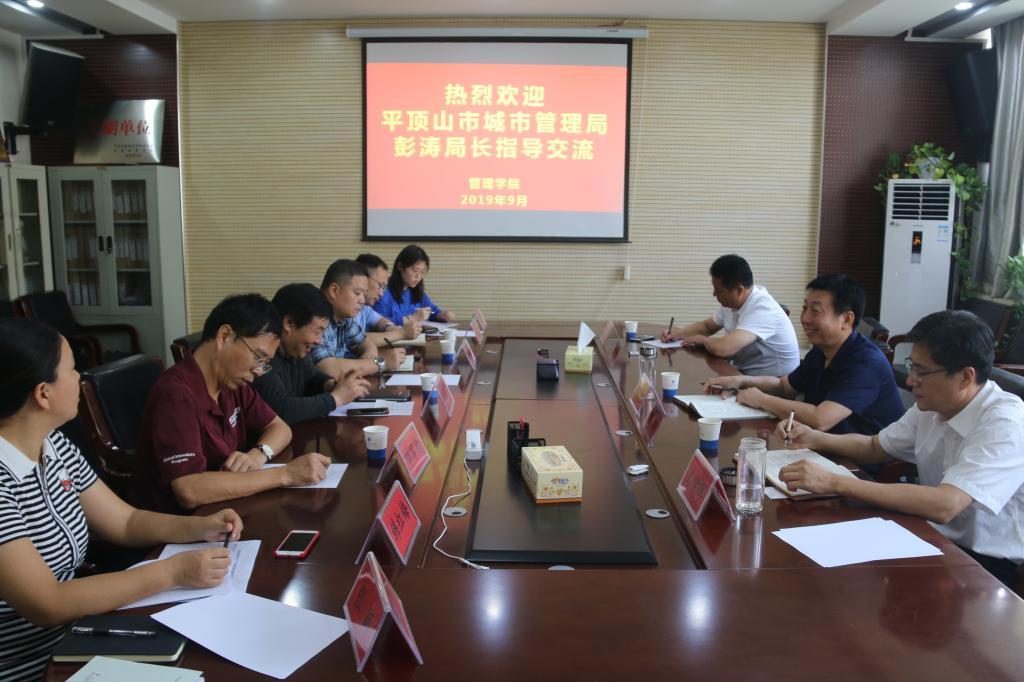 (通讯员:张颖 常小高)9月27日上午,平顶山市城市管理局局长彭涛等一行4人莅临我院进行指导交流。我校合作与发展规划处处长毕军贤、科研处学科建设办公室主任张大力、学院副院长祖立厂和相关教师陪同交流座谈。