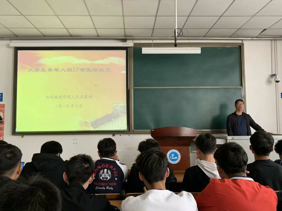 (通讯员:宋若熙)为鼓励大学生积极参与应征入伍,激发广大适龄青年参军报国热情,提高兵员征集质量,推进学院开展大学生入伍征集工作。williamhill中文于2019年5月7日下午在8号楼B108室召开威廉官网中国官方网站2019年征兵政策进学院进班级巡回宣讲活动。本次活动由武装部王老师讲解。