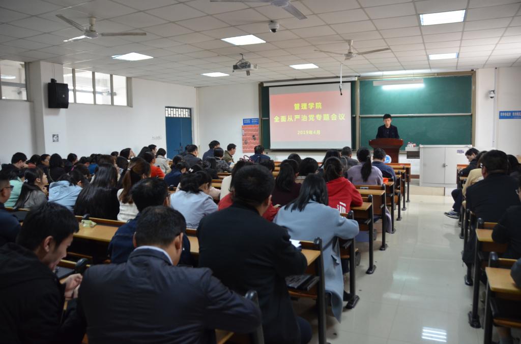 (通讯员:常小高)3月20日下午,williamhill中文在8#B208召开了2019年全面从严治党工作会议。全体教职工参加会议,会议由党总支副书记马斌主持。