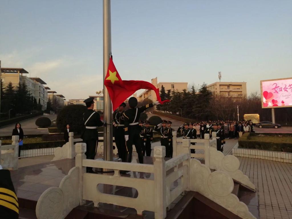 (通讯员:宋若熙)为使学生在生活实践中树立远大的理想,将爱国之心、人生之志化作报国之行,与祖国同呼吸、共命运,将热血青春投入到建设有中国特色社会主义现代化国家的伟大事业中,为建设中国特色社会主义强国贡献出自己的力量。williamhill中文于3月11日在升旗广场举行“国旗飞扬,梦想起航”升旗仪式。出席本次活动的有辅导员老师,院学生会代表,2018级全体学生。