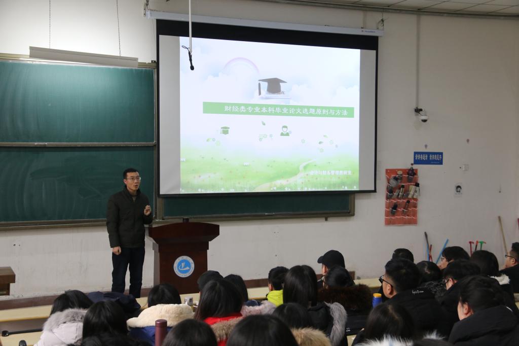 启动仪式后,万林葳博士开讲第一期“博士讲坛”,为学生作了“财经类专业本科毕业论文写作方法”的专题讲座。他强调,毕业论文是大学生涯的关键性总结,是四年学习的最后环节,大家要高度重视毕业论文写作。随后,他从学术论文的特点及要求、选题、资料搜集、剪裁及引用、结构安排、研究方法、学术见解观点以及论文的文体和文字表达、学术规范等多个方面,并结合若干实例及好的范文,针对同学们在学位论文中易出现的问题反复强调,并总结了好的论文应具备的一些基本要素,全面、深入而重点突出地讲解了论文的写作方法。讲座引发了现场同学们的强烈反响和积极思索,现场互动不断,气氛热烈。