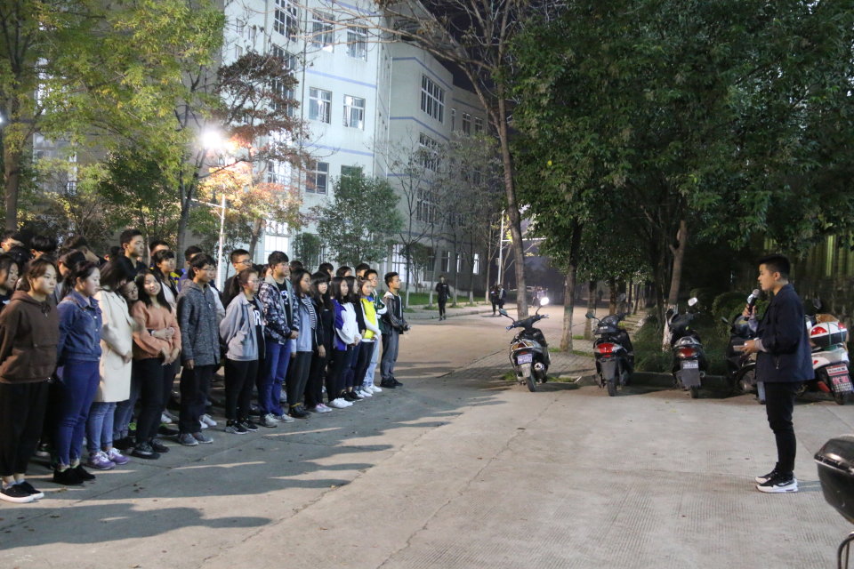 14日晚上,随着警报声的响起,各班同学在班委的指导带领下,迅速进入警备状态,有序从教室往楼下撤离。逃生时没有发生拥挤、踩踏和碰伤的事故,在两分钟之内按照预定的疏散路线,全员安全撤离到八号楼门前的安全地带。在同学们到达指定位置后,williamhill中文学生消防安全员葛通向同学们介绍了消防安全相关知识及灭火器的操作过程,本次消防演练活动顺利结束。