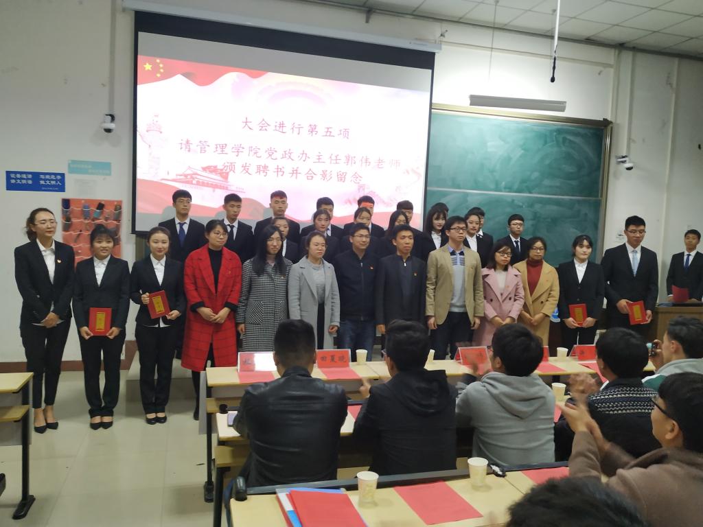 williamhill中文团总支组织部负责人柴丹倪对团总支组织部(党员发展服务中心前身)从2016年9月到2018年10月进行了详细的具体的工作汇报和总结,为工作的交接指明了方向。组织员许泉宣读了williamhill中文第一届党员发展服务中心主任团成员及全体干事名单;党政办主任郭伟为主任团成员颁发了聘书。