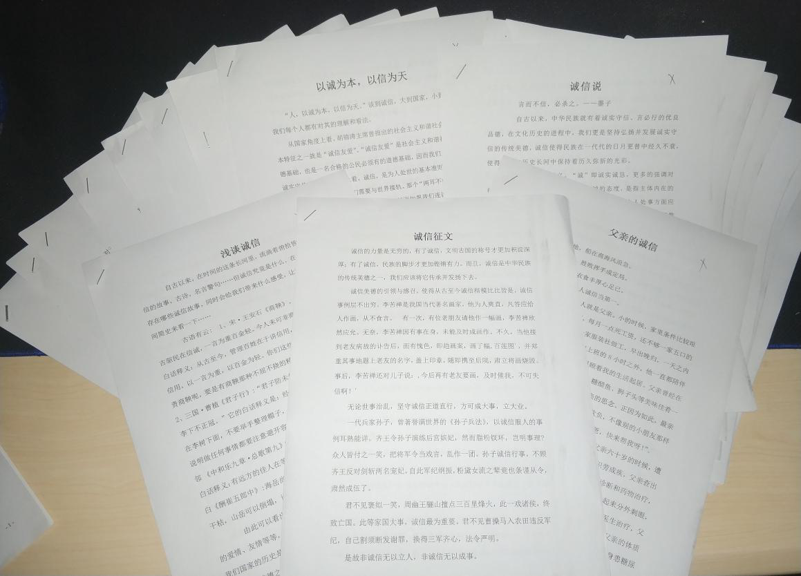 诚实守信不仅是做人做事的基本原则,也是学校开展其它德育活动的基础。通过此次征文活动,有利于学生提高自我道德修养,提升自我写作能力,为建设诚信校园夯实基础。