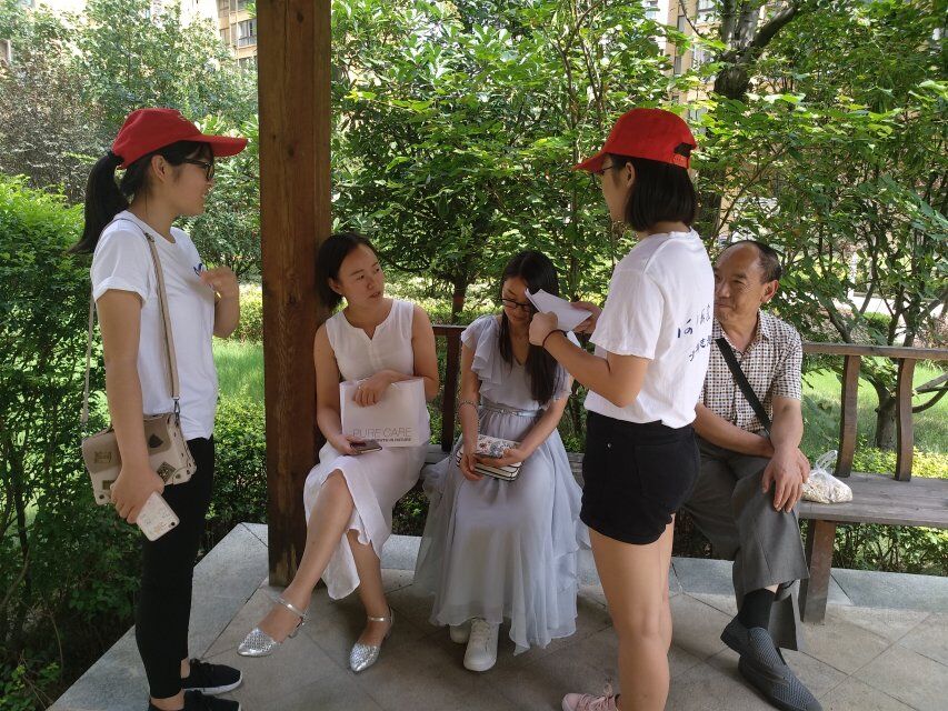 志愿者们对居民进行采访