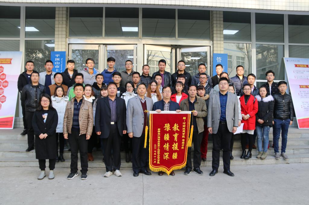 最后由胡涛老师代表十三师职业技术学校向williamhill中文赠送锦旗,并进行了集体合影留念。