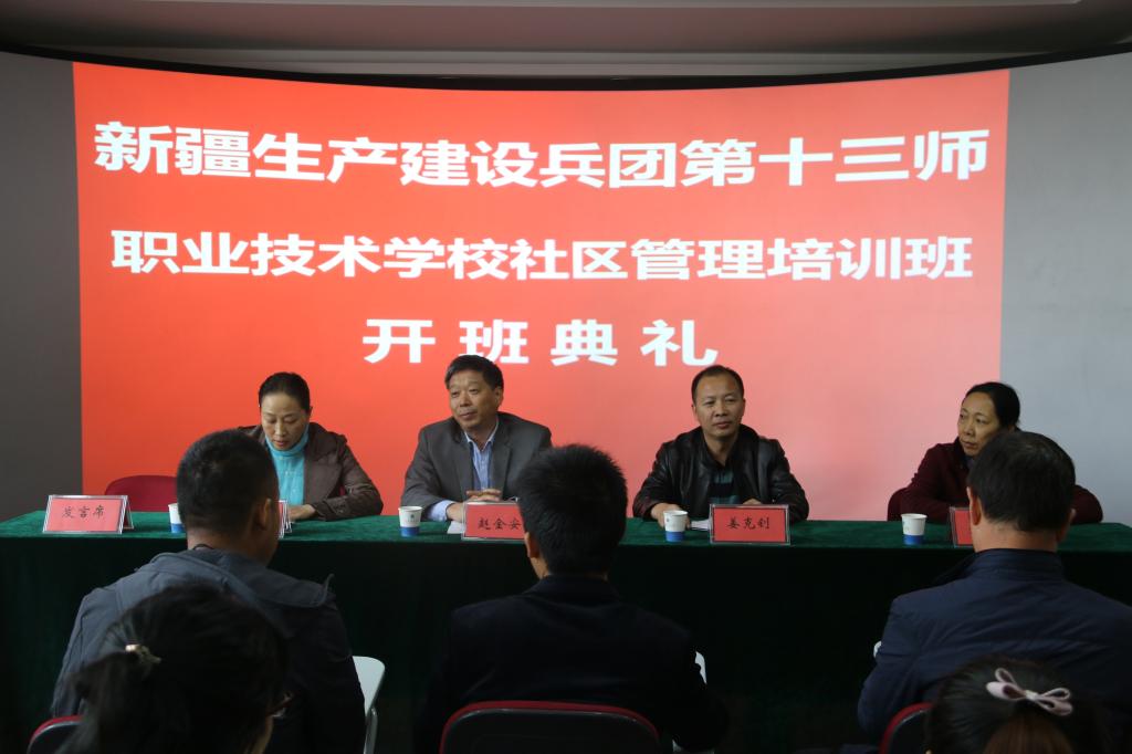 (通讯员 郭伟)10月11日上午,新疆生产建设兵团第十三师职业技术学校社区管理培训班开班典礼在williamhill中文举行。新疆生产建设兵团第十三师职业技术学校援疆副校长姜克钊、我校副校长赵金安、williamhill中文领导班子及35名学员参加了开班典礼。