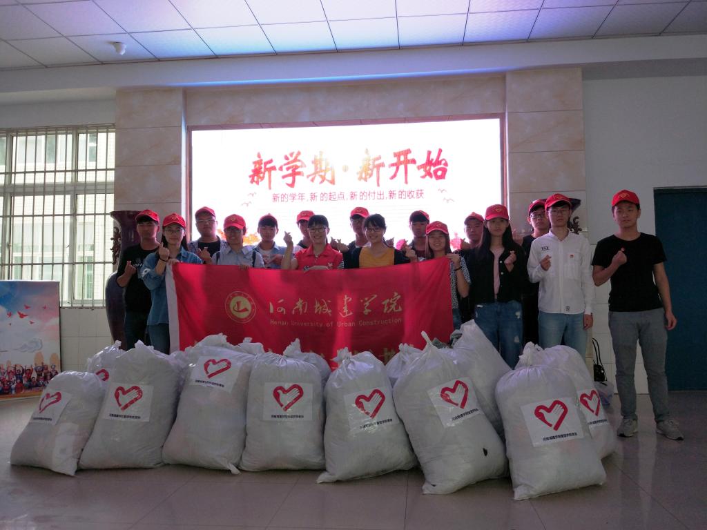本次活动城建学子所捐赠的衣物约1300件,共计包裹13包,全由平顶山市志愿者协会接收处理。9月26日上午,天气阴雨连绵,但捐赠衣物公益活动如期举行。志愿者们提前把捐赠的衣服整理打包好,整齐摆放在一楼大厅。副书记马斌和团学办李玲慧老师热情接待了平顶山市志愿者协会的领导代表,并进行了融洽的交谈。听说平顶山市区里的不少旧衣回收箱被人为破坏时,马书记给他们提了新的建议:在高档小区里,将旧衣回收箱和投币贩卖饮料机放在视频监控范围内,这样可以避免被破坏。平顶山市志愿者协会王华主任认为这个建议非常好,他们会积极采纳。