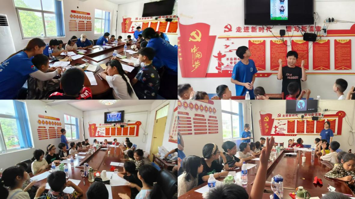 实践团首场活动的重心聚焦于乡村青少年群体。队员们以趣味教学和互动游戏的方式开展普通话教学,激发孩子们的语言学习兴趣;防溺水教育中,队员们借助案例讲解溺水的危险以及预防措施,帮助孩子筑牢安全防线;传统文化讲解则从传统节日、民间技艺延伸至古代诗词、神话传说,有效增进了孩子们对于中华文化的认同感与自豪感。