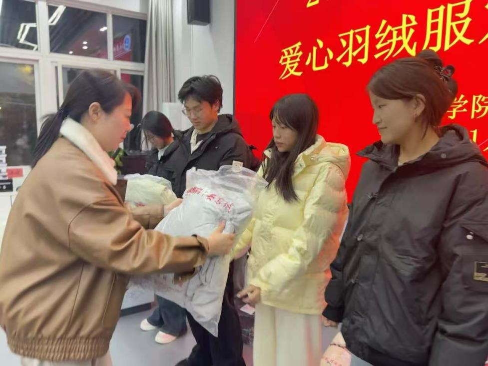 为学生发放羽绒服