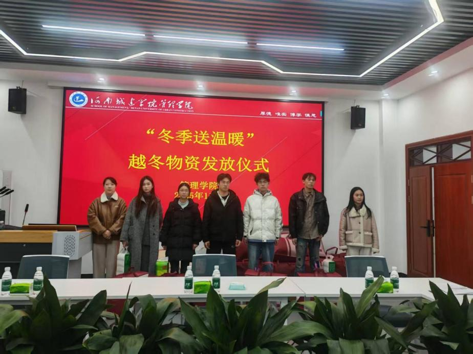 (通讯员 王倩倩)寒冬将至,暖意先行。为深入贯彻落实国家资助政策,切实关心关爱家庭经济困难学生,帮助困难生温暖过冬、安心学习,williamhill中文于11月21日下午在八号楼A105会议室举行冬季送温暖——越冬物资发放仪式,williamhill中文党委副书记杨璐、辅导员老师和学生代表参加仪式,与现场同学亲切交流,将满载关怀的越冬物资逐一送到大家手中。